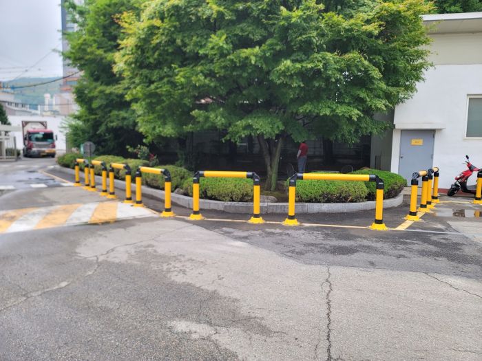 또한 노란색 파이프에 검은색 반사시트를 부착하여 보호대의 가시성을 높였습니다.