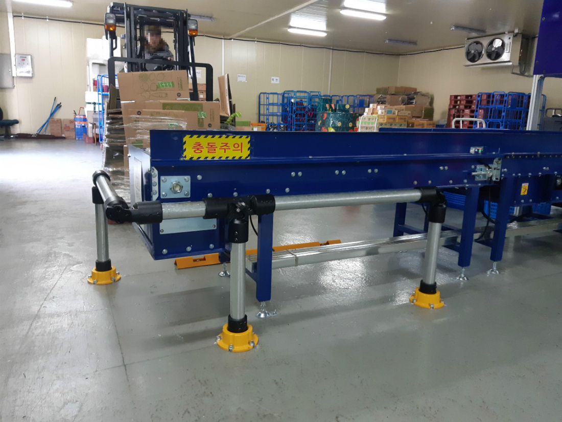 당사는 물류업체에 스윙텍터를 이용한 컨베이어 보호대를 설치하였습니다.