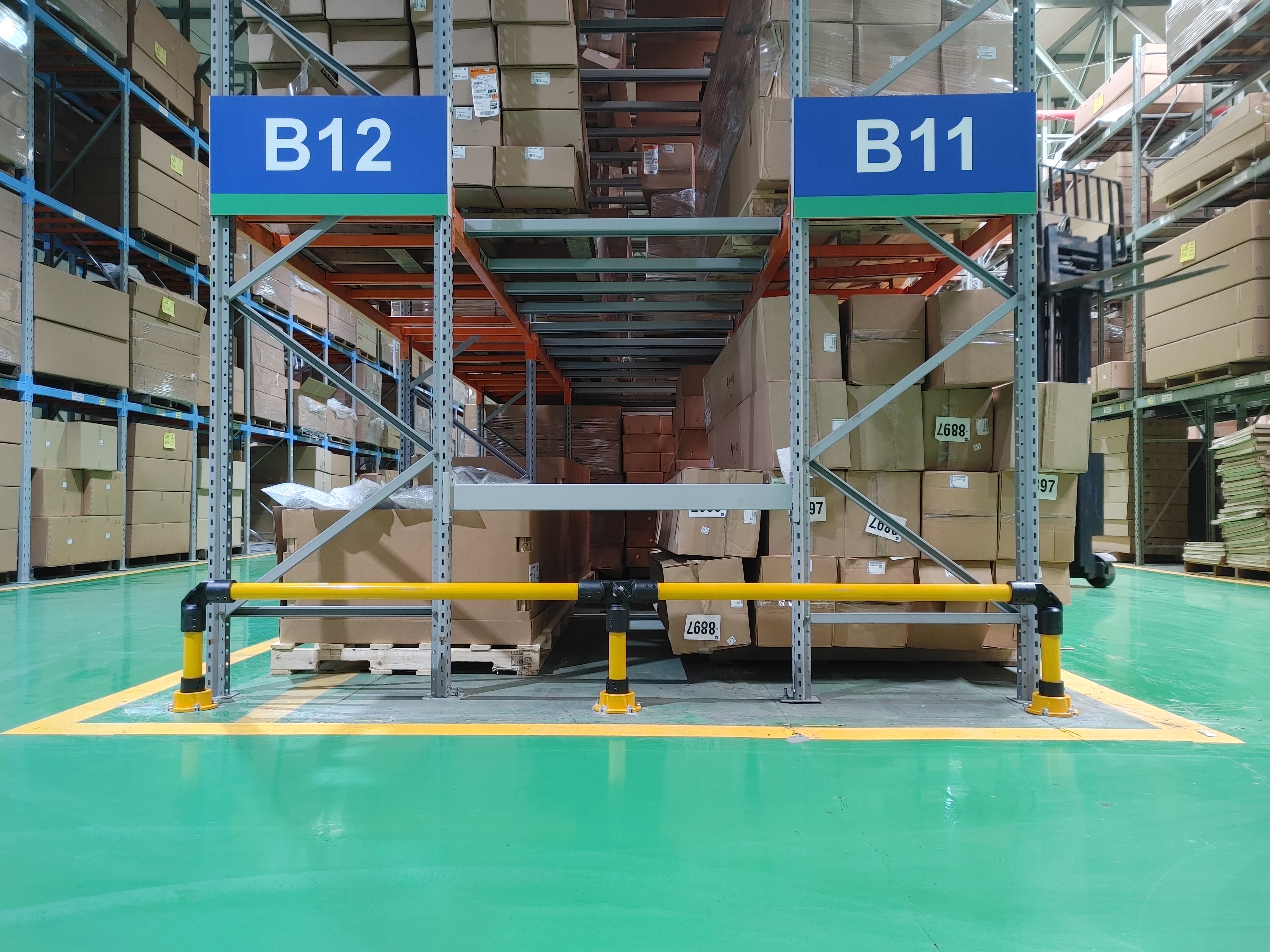 Frame protector is installed at rack end to protect racking system from forklift accident.