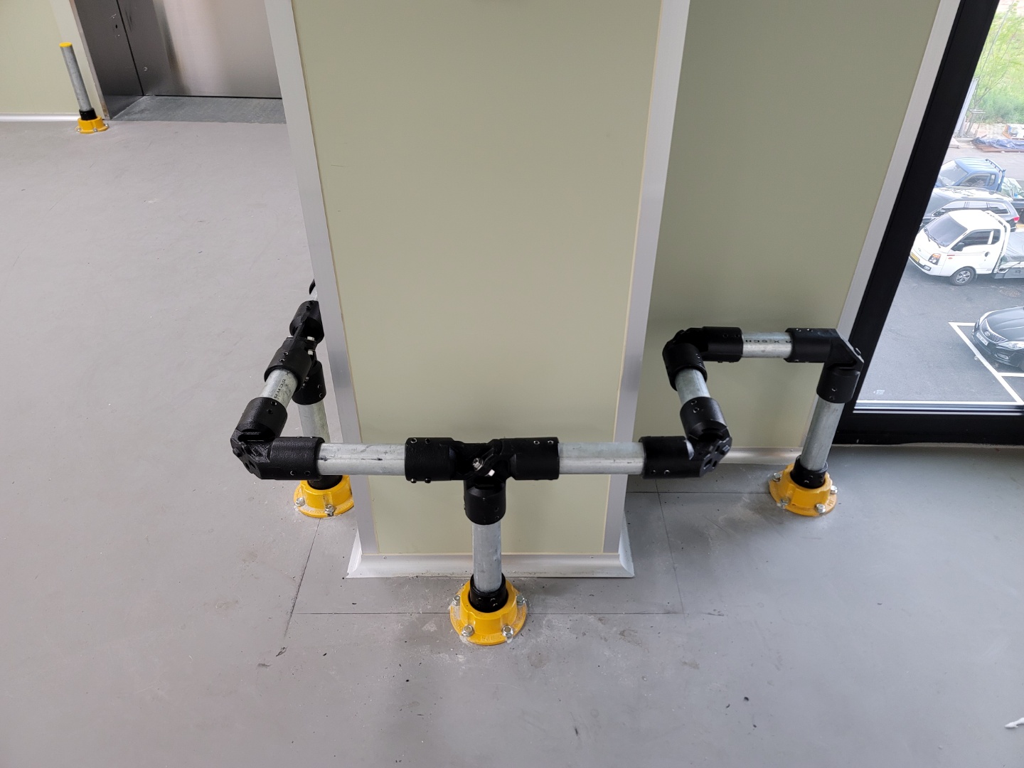建物内のコーナーや柱、ビームなどを保護するために設置します。柱やコーナーなどは、破損時の補修作業が難しく、費用も高額になるため、ガードの設置が一般的です。
