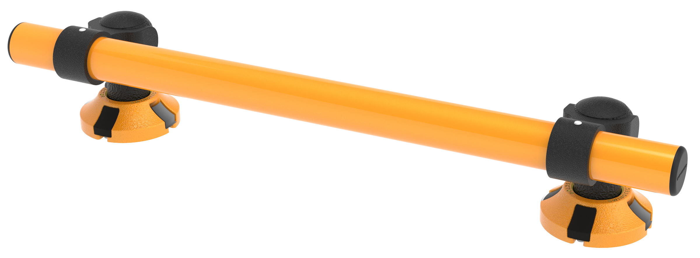 衝突に弱いフレーム下部の保護を目的として開発された製品です。従来のフレームガードよりも低い高さに設計されており、フォークリフトのフォークとの衝突時にも製品を保護できます。