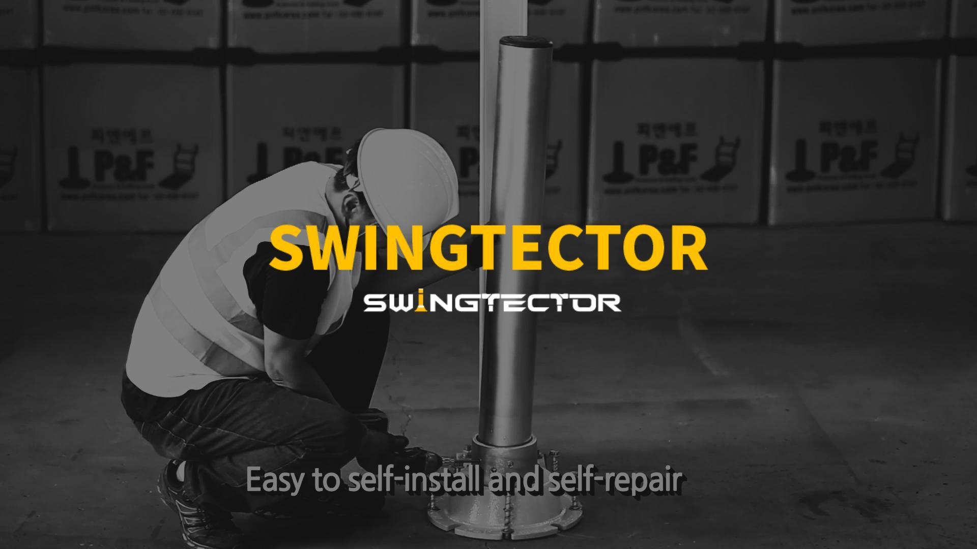 빌딩, 물류창고 등의 엘리베이터 도어, 냉장/냉동창고 도어 보호용으로 디자인된 스윙텍터 보호대.